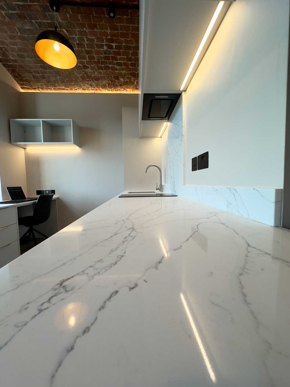 Our range includes worktops, precise upstands, and stylish splashbacks, ensuring a coordinated look across your project.